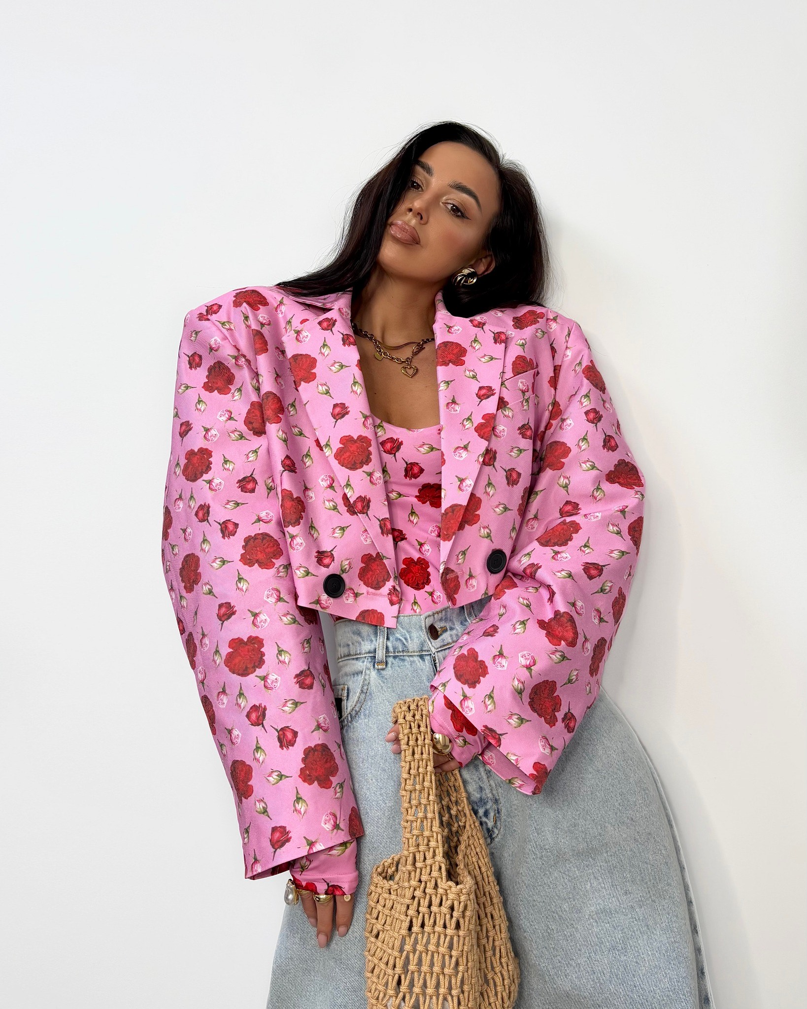 Marynarka jeans w kwiaty